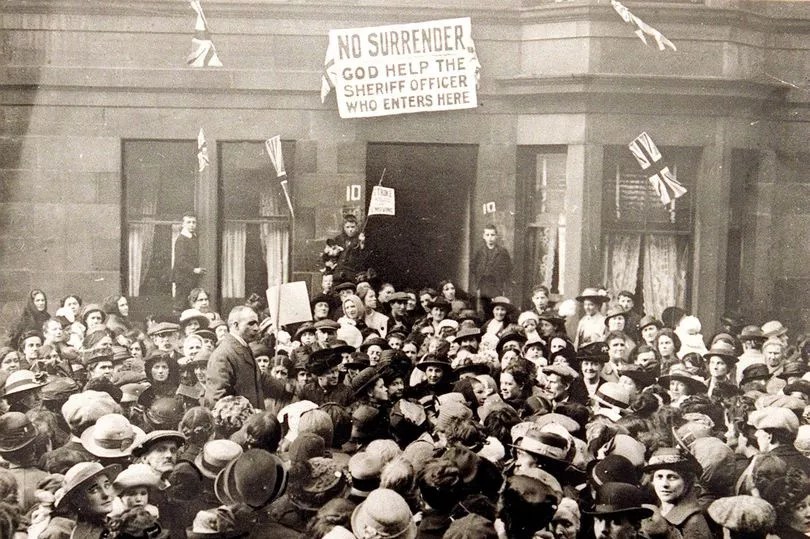 Similar but smaller scale strikes and protests were happening across Britain at the same time (including Leeds!), but it was the Glasgow mass action that forced the government into changing the law. The 1915 Rent Act froze rents at pre-war levels and making eviction harder. A huge win!