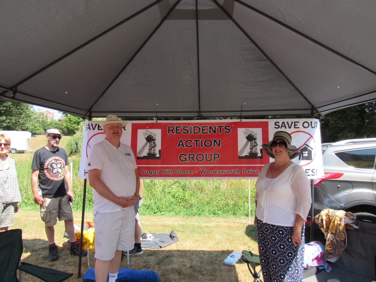 Across the year Cindy, John, Hazell, Mark, Susan, Wendy, Mavis and other residents attend and speak at various activist housing protest marches, local events, and council meetings. Wendy sorted banners and posters for display across our streets and houses.